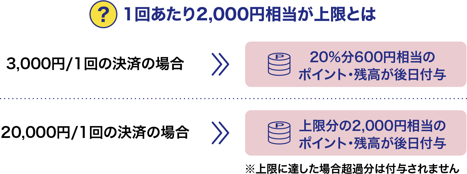 1回あたりの上限2,000円相当 / 期間あたりの上限5,000円相当